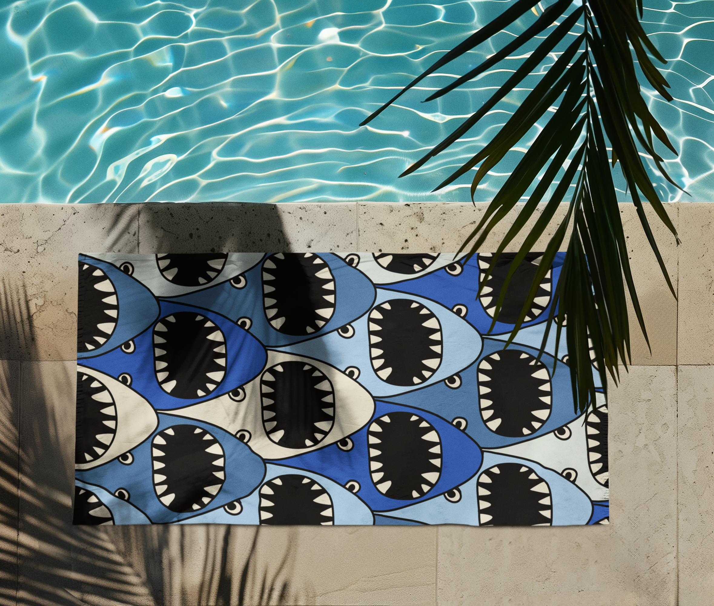 Fun Shark Beach Towels, Cute Beach Accessories, Summer Swim Gear, Poolside Necessities, Great for Kids